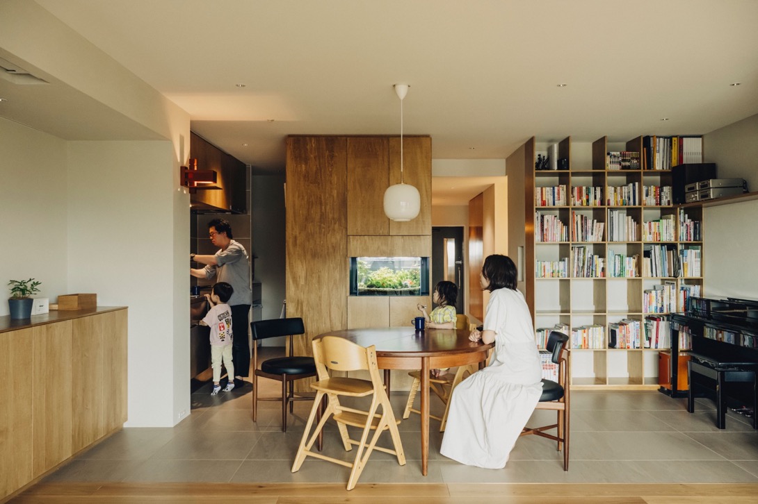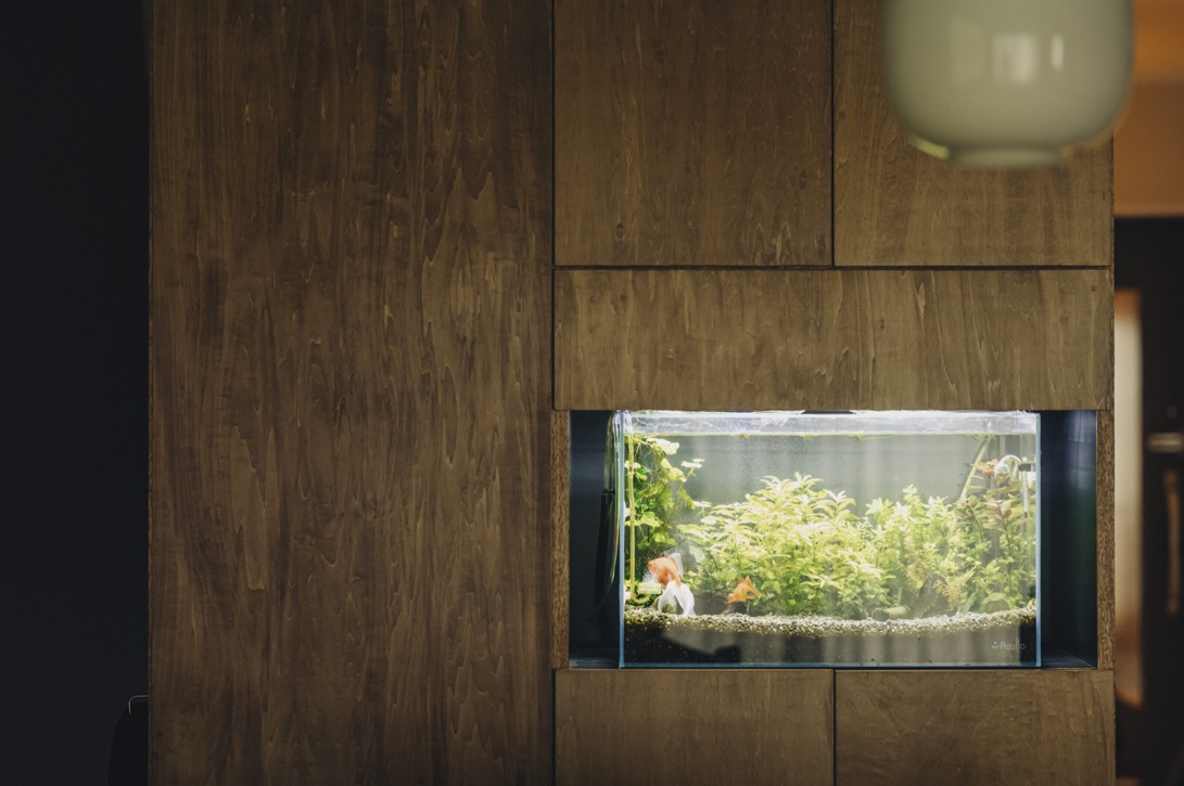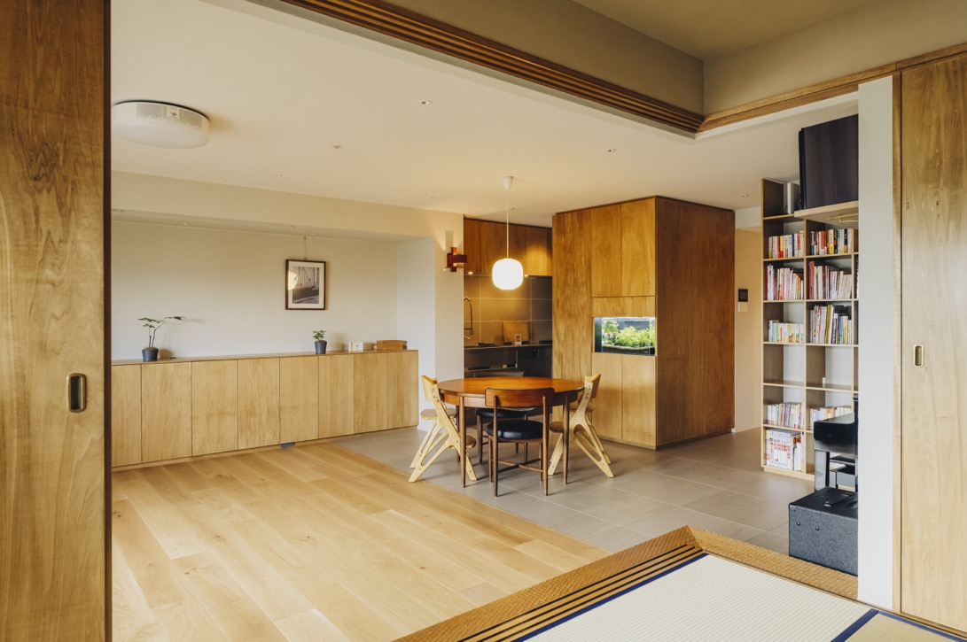 ご主人:僕が気に入っているのは、和室からダイニング越しに水槽台を眺める角度。