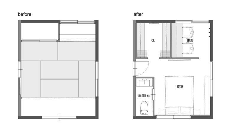 間取り l 【和室+押入れ】→【寝室+書斎+クローゼット+洗面+トイレ】