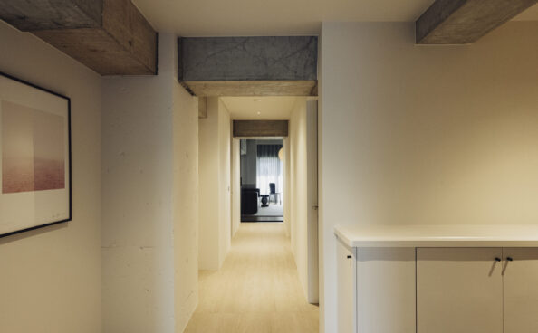 玄関を開けると、まずは印象的な廊下が広がっています。