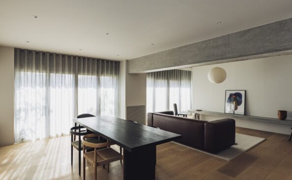 「 S 」では、デンマークの老舗 Kvadrat社のファブリックを使用し、オーダーメイドでカーテンを製作しています。