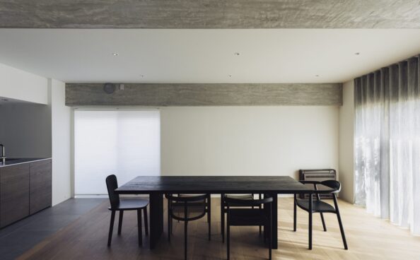 また、ダイニングには鉄触媒染めを用いた造作テーブルを設置。