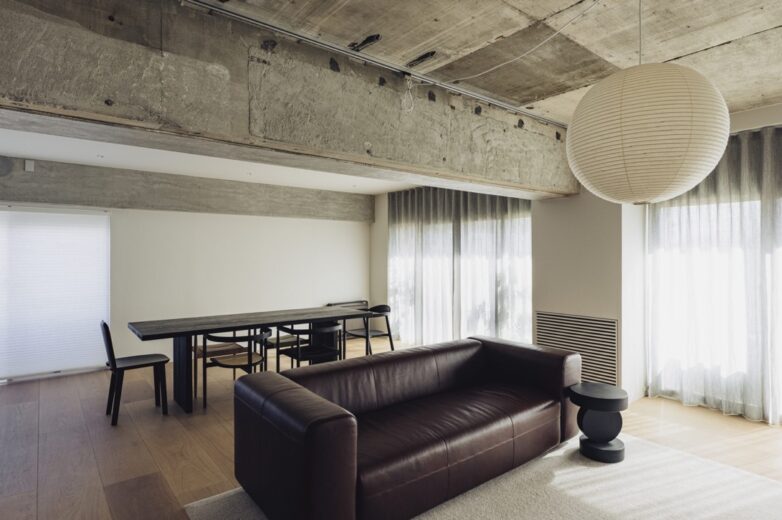 リビングのペンダントライトには、和紙でつくられたイサムノグチの照明「AKARI 60A」を採用。