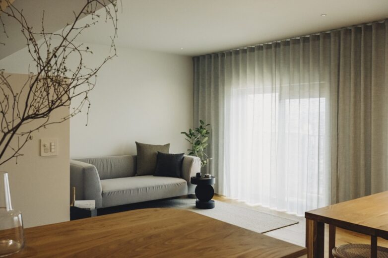 また、カーテンは生地の色や質感、厚みの違い、どの高さから吊るすかによって雰囲気をがらりと変えることができます。